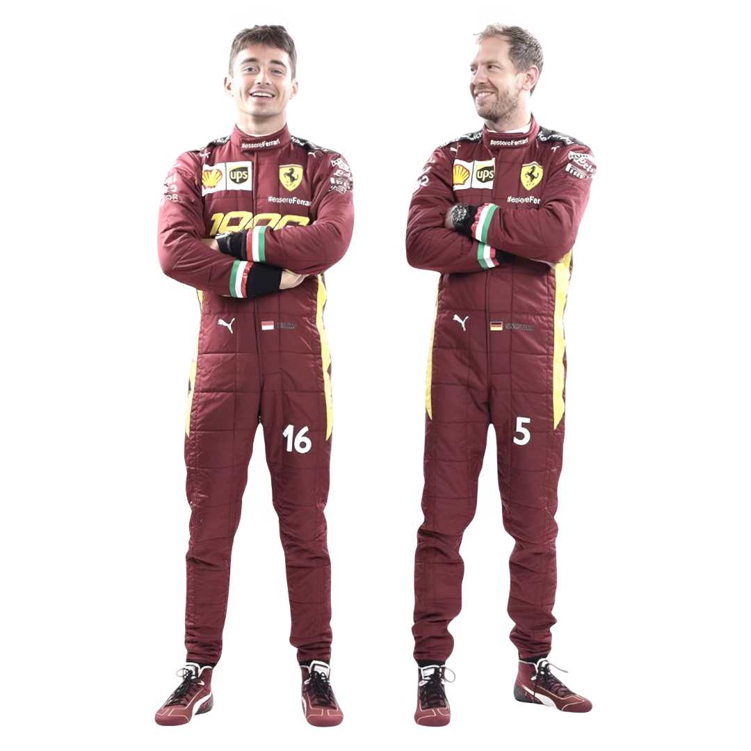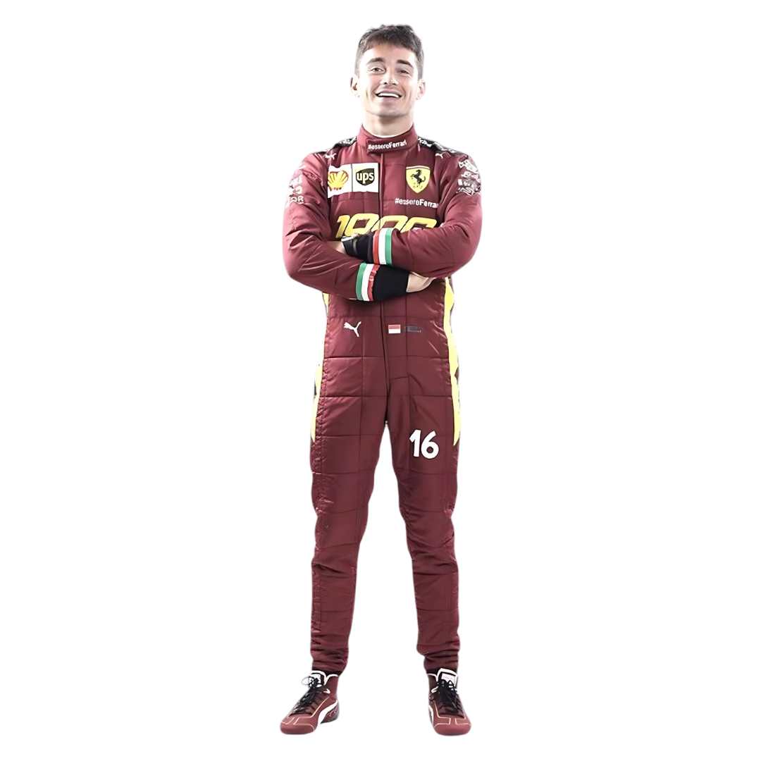Celebrate Ferrari’s historic milestone with the Charles Leclerc 2020 Ferrari 1000 GP F1 Racing Suit – Team Ferrari. Specially designed for Ferrari’s 1000th Grand Prix at Mugello, this suit features a unique retro-inspired burgundy design, authentic sponsor logos, and exquisite detailing, making it a rare and iconic collectible for Formula 1 enthusiasts.