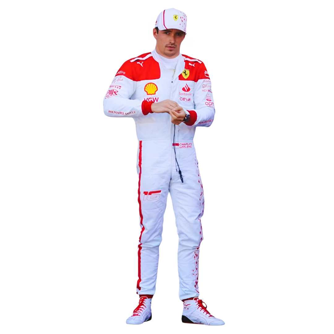 Step into the world of Formula 1 with the 2023 Charles Leclerc Monaco GP F1 Scuderia Ferrari Racing Suit. Designed for true Ferrari fans, this suit celebrates Leclerc’s iconic race at the Monaco GP. With premium craftsmanship, precise sponsor detailing, and Ferrari’s signature red design, it’s the ultimate collectible for motorsport enthusiasts. Perfect for display, karting, or fan events, this suit brings the spirit of Ferrari racing directly to your wardrobe.