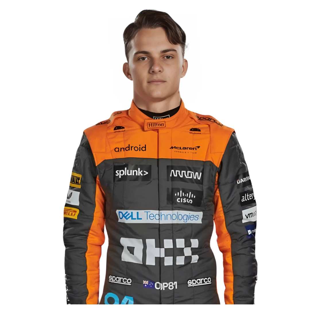 Celebrate Oscar Piastri’s debut Formula 1 season with the 2023 McLaren Racing Suit, featuring McLaren’s iconic papaya-orange and black design. Crafted with premium materials and authentic sponsor detailing, this suit is ideal for collectors, motorsport enthusiasts, and dedicated F1 fans.