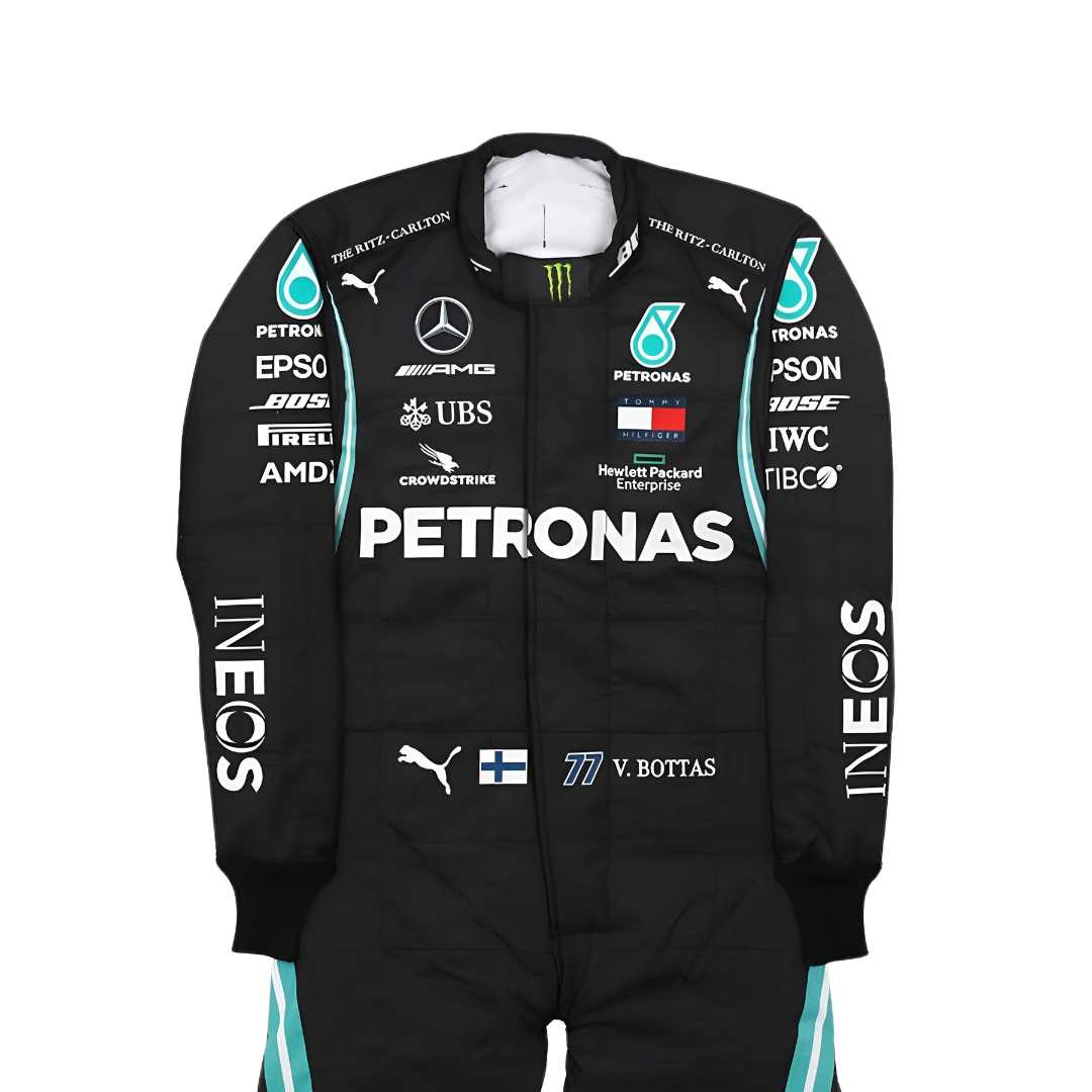 Experience the excitement of Mercedes F1 racing with the Valtteri Bottas 2021 Racing Suit — a must-have for every Formula 1 enthusiast.